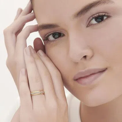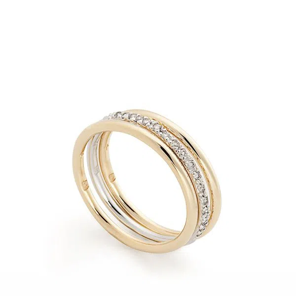 Anel de ouro amarelo e ouro branco 18K com diamantes - 3 aros